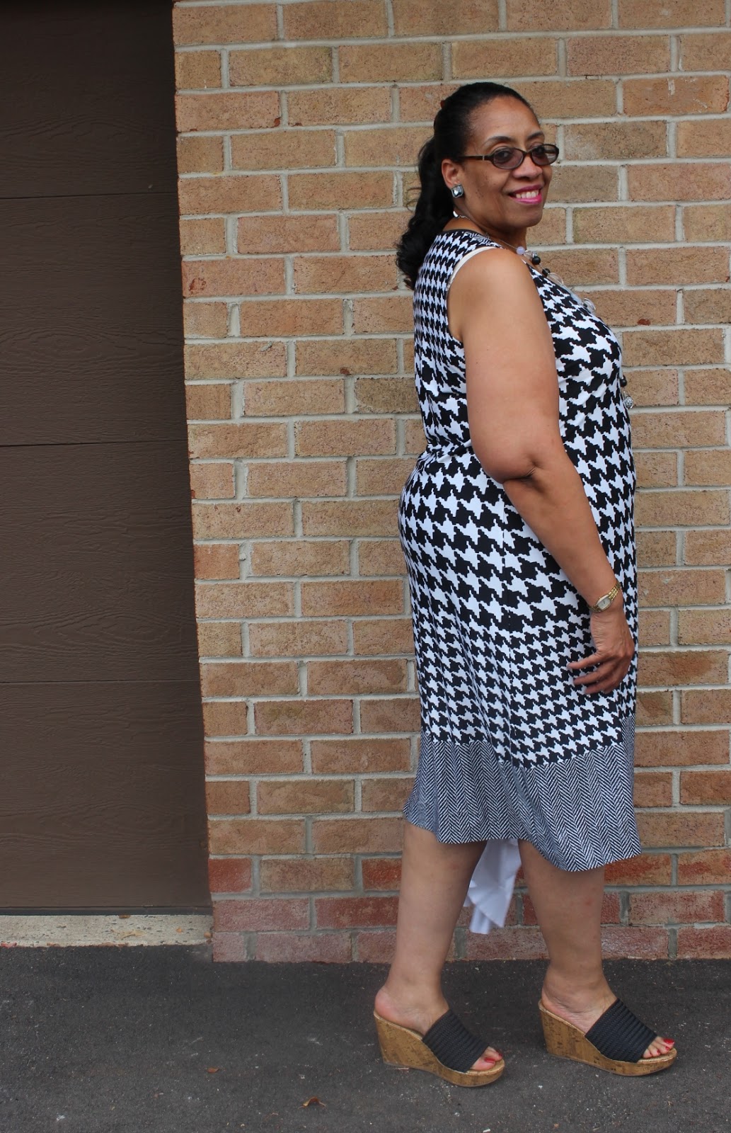 I've always been intrigued by how the herringbone/houndstooth print worked and thought it would make a great short version of McCalls 6559.